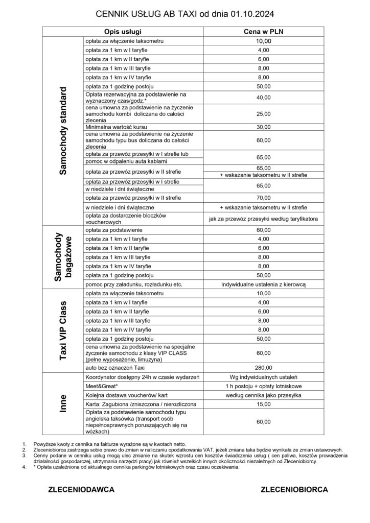 • Cennik